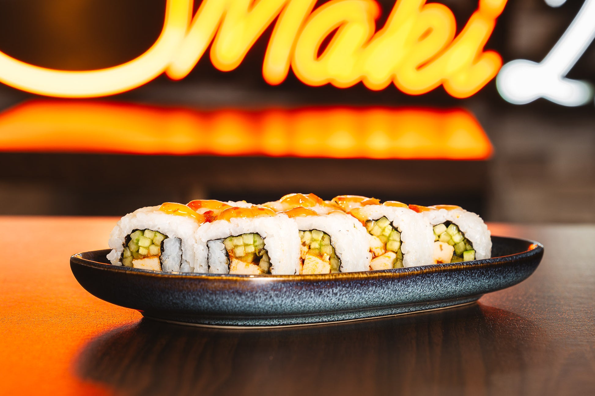 Poulet à l épicé saté, Concombre, aigre-douce, mayonnaise légèrement épicé, oignons frits